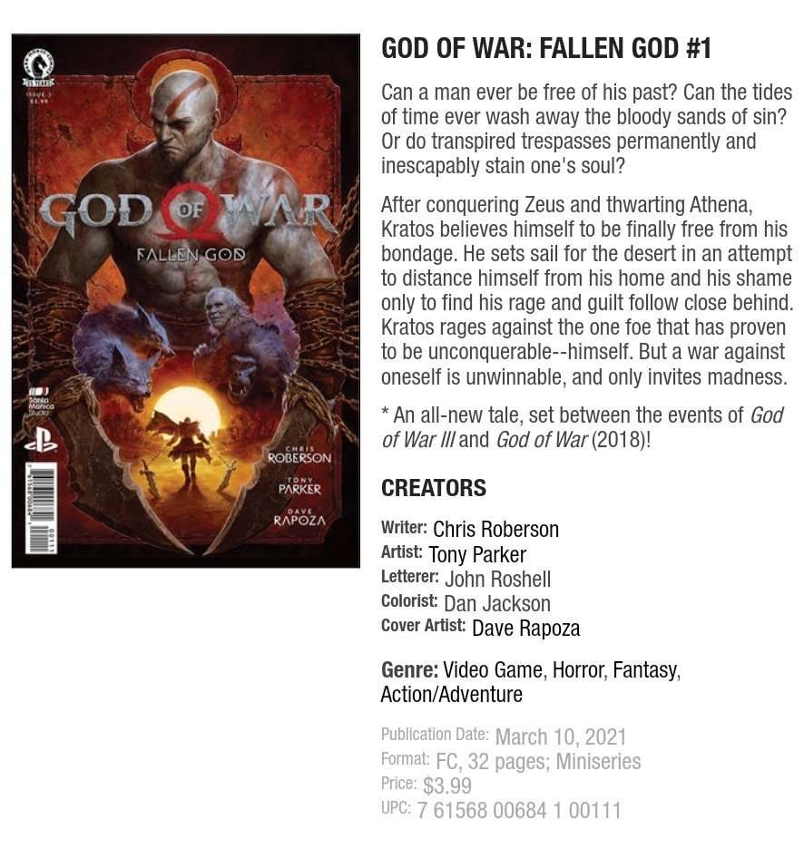 تم الإعلان من قبل الناشر Dark Horse Comics عن قدوم قصة مصورة للعبةبأسم God Of War Fallen God في تاريخ 10 مارس 2021.