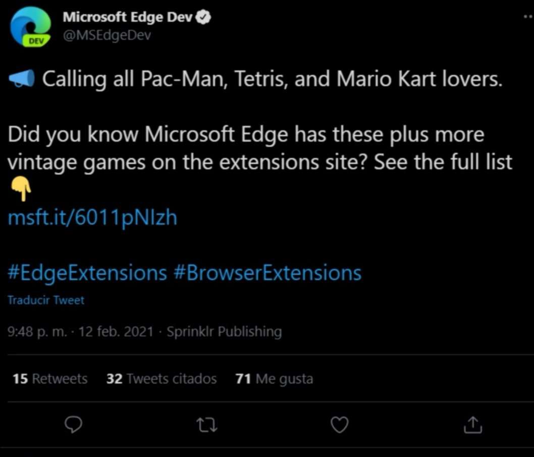 إضافة إلى ذلك، يُزعم أن حساب Twitter الرسمي لـ Microsoft Edge Dev ذهب إلى حد الترويج لهذه الألعاب القديمة.