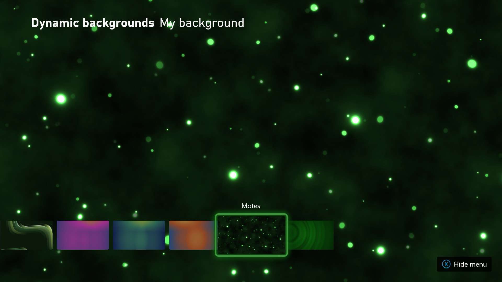 أخيراً تمت إضافة خلفيات ديناميكية جديدة مثل خلفية Motes و Original، و التي هي ببساطة خلفيات تتحرك خلف الشاشة و هي مفيدة لتجنب مشاكل التطبيع المنتشرة في شاشات OLED، حيث يمكنكم تشغيلها فقط على أجهزة Xbox Series X|S عبر الدخول إلى الإعدادات > عام> التخصيص> الخلفية لدي> الخلفيات الديناميكية. أو باللغة الأنجليزية Settings > General > Personalization > My background > Dynamic background