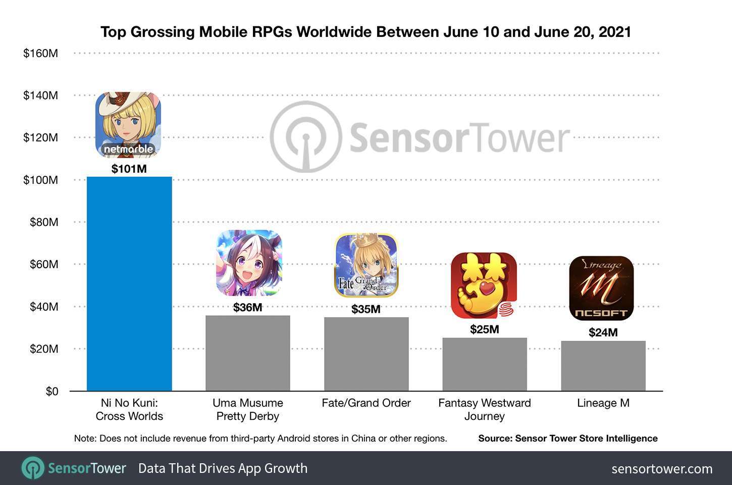 لا تزال لعبة Honor of Kings من Tencent هي أكثر لعبة للهواتف المحمولة من حيث الإيرادات من 10 إلى 20 يونيو ، مع إيراداتها البالغة 102.3 مليون دولار التي تفوقت على على لعبة Ni no Kuni: Cross Worlds.
